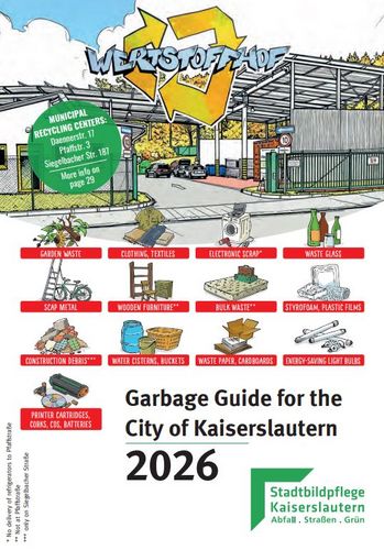 The 2026 Garbage Guide for the City of Kaiserslautern is available to take away from the municipal recycling centers, the Rathaus city hall and the Stadtwerke Kaiserslautern (municipal utilities). An online version can be downloaded from the Stadtbildpflege website at www.stadtbildpflege-kl.de.