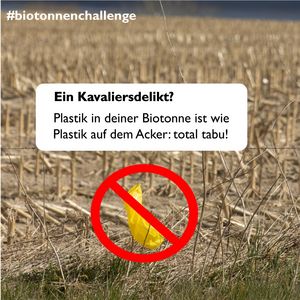 Der Plastikbeutel in der Biotonne ist allerdings vergleichbar mit dem Plastikbeutel auf dem Feld: Falls die Kompostieranlage nicht alle Plastikfetzen aus dem Bioabfall aussiebt, können kleinste Kunststoffpartikel und Mikroplastik im Kompost bleiben. Plastik in die Biotonne zu werfen ist also genauso wenig ein "Kavaliersdelikt" wie Plastik auf das Feld zu werfen - beides ist grob fahrlässig und schadet der Umwelt enorm.